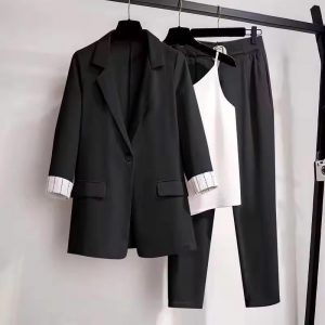 3-Piece Co-Ord Set Featuring a Sleek Blazer, Comfy Pants & a Chic Spaghetti Top